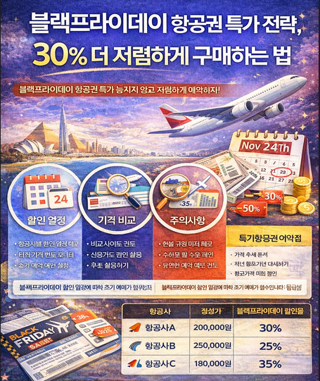 블랙프라이데이의 정확한 할인 일정과 준비사항을 이해하는 것이 중요합니다. 이는 항공권 가격이 떨어지는 정확한 시점을 파악하는 데 도움을 줍니다.