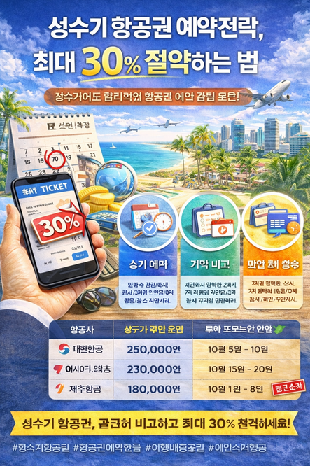 항공권을 예약하기 전에 여러 항공사와 가격을 비교하는 것이 중요합니다. 특히 성수기에는 가격 변동이 심하므로 주의가 필요합니다.