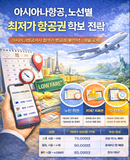 아시아나항공의 최저가 항공권 예약 팁을 제공합니다. 일정과 예산에 맞춘 현명한 예약 방법을 알려드립니다.