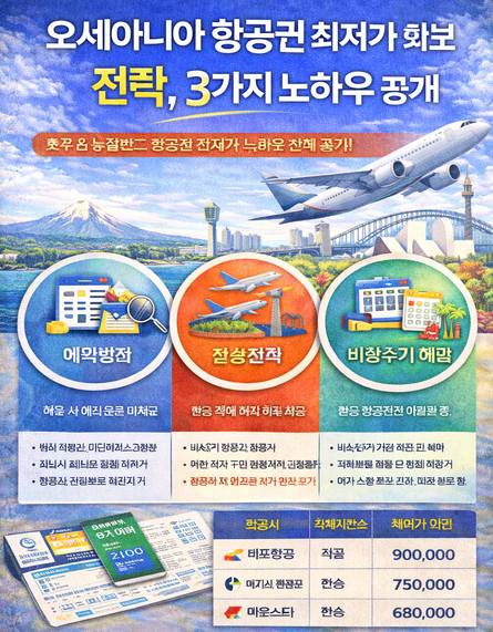 오세아니아 지역(호주 및 뉴질랜드) 여행을 계획하고 계신가요?최저가로 항공권을 예약하는 방법을 알고 있으면 많은 비용을 절감할 수 있습니다. 최저가로 항공권을 예약하는 방법을 알고 있으면 많은 비용을 절감할 수 있습니다. 지금 읽어야 할 이유는, 이 글에서 소개하는 3가지 최저가 확보 노하우로 완벽한 여행을 준비할 수 있기 때문입니다.