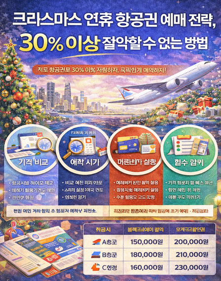 크리스마스와 설 연휴는 가족과 친구와 함께 시간을 보내는 특별한 순간입니다. 이 시기에 항공권을 예매하면 큰 비용이 발생할 수 있지만, 몇 가지 전략만으로도 30% 이상 절약할 수 있습니다. 지금 읽어 알고 있는 척해보세요!