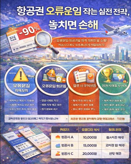 항공권 오류운임은 저렴하게 항공권을 예약할 수 있는 기회입니다. 하지만, 이 기회를 제대로 잡지 못하면 상당한 손해를 볼 수 있습니다. 이 글에서는 오류운임을 잡기 위한 실전 전략을 소개합니다.