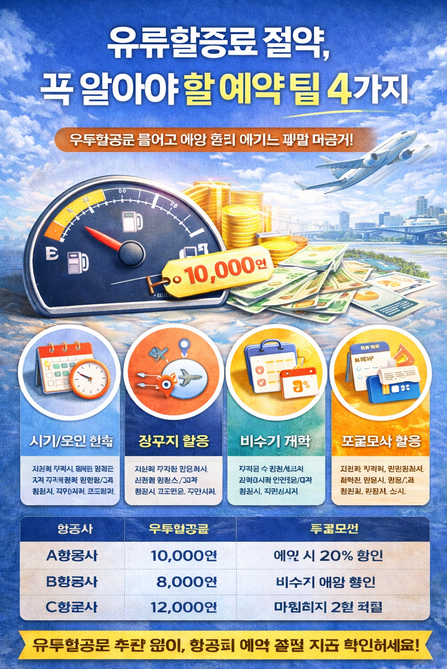 항공권 예약 시 가장 적절한 시기와 요일을 선택하는 것이 유류할증료를 줄이는 비결입니다. 평일 저녁이나 새벽에 예약하면 더 낮은 유류할증료를 적용받을 수 있습니다.
